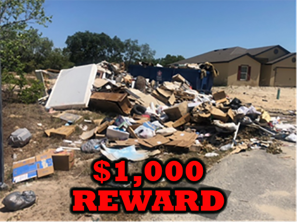 Due to an increase of illegal dumping there, Heartland Crime Stoppers is offering a $1,000.00 reward for information leading to the arrest of suspects who have committed felony dumping in the Poinciana area.